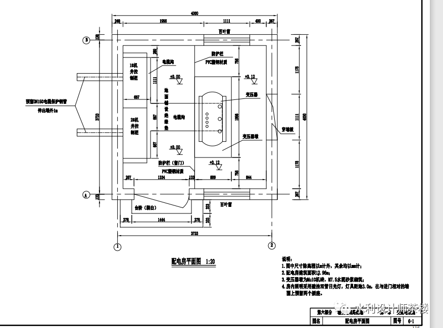 第六部分输变电线路配套 (1)变配电设施按照安装形式不同分为配电房内和电杆上两种。配备前应进行配套变压器容量计算,根据各管灌系统及配套电机的有关参数,选取变压器型号。(1)根据计算出的输电线路导线截面积及敷设环境,选择导线型号。(2)电杆布置。高压电杆每50m布置一根,低压电杆每40m布置一根,其质量应符合《环形混凝土电杆》(GB/T4623-2014)的标准。