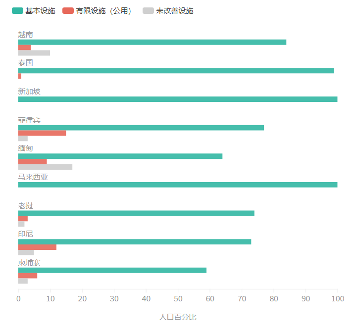 2012年,《东盟人权宣言》明确保障了“安全饮用水和卫生设施的权利”,但很少有东盟成员国将用水权纳入法律。许多国家在供水服务、卫生、气候适应和污染方面存在严重问题,未经处理的废水、固体废物、农药和重金属被排放到供水系统中。人口增长、城市化、快速工业化和气候变化都加剧了这些威胁。